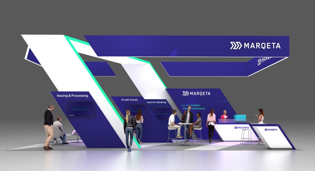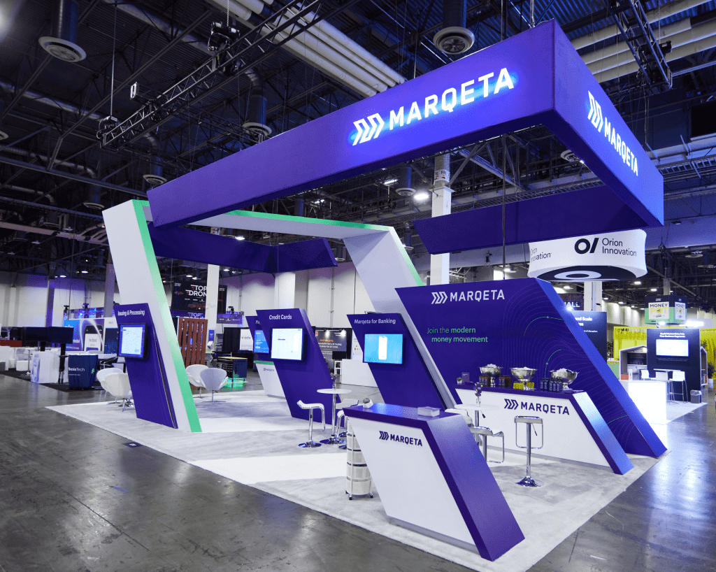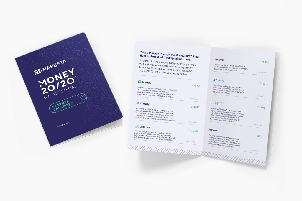 The largest in-person event of the year for the financial industry is Money20/20. It’s where the entire money ecosystem (from Payments to Banking to Fintech) comes together. In 2022, Marqeta’s Founder made a live announcement of their expansion into banking, so the booth and collateral were designed to promote the launch.