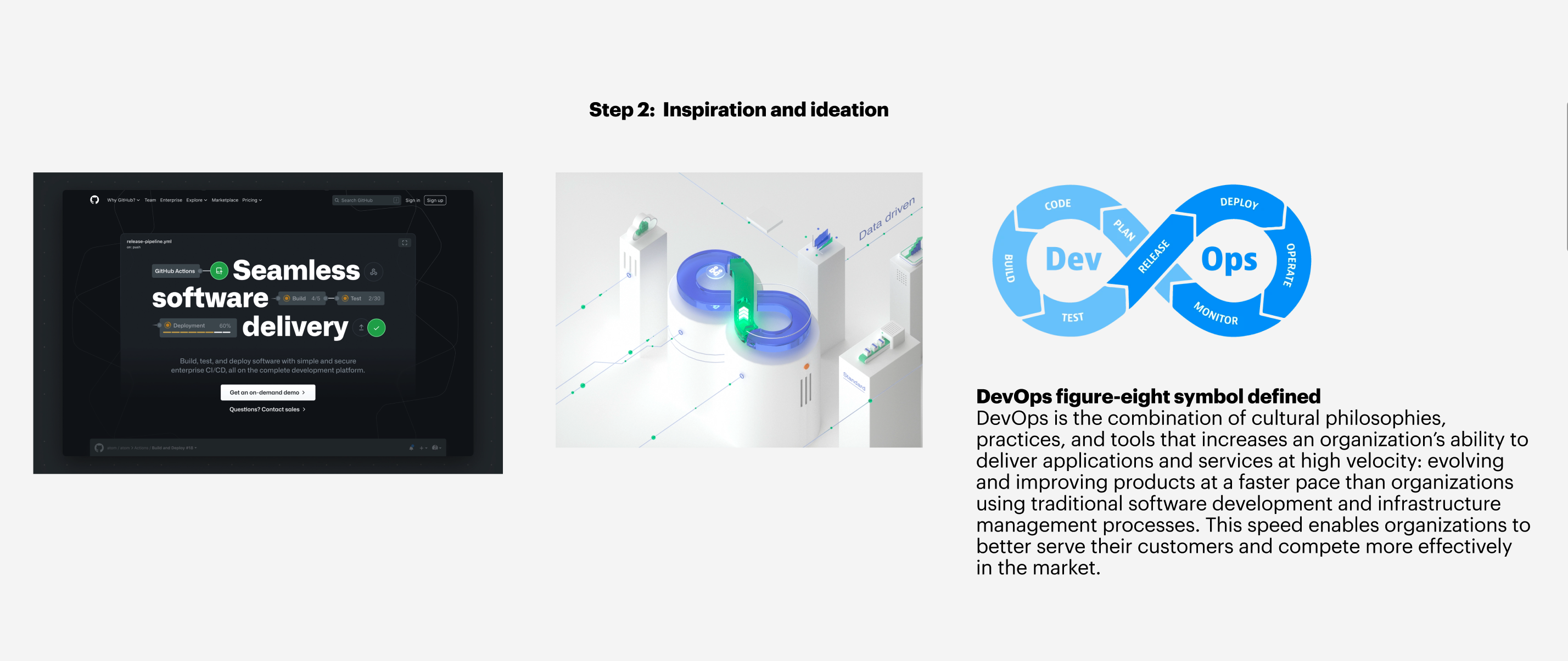 I creatively solved the request for a sub-brand that would market to a developer audience using the DevOps figure-eight symbol. DevOps team management defines the process of building, testing, and releasing product updates and the figure-eight is by far the most widely-understood visual symbol for this developer audience.