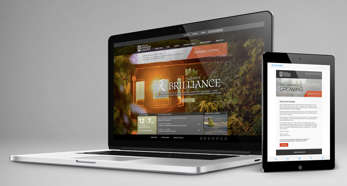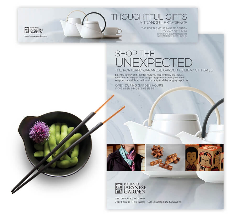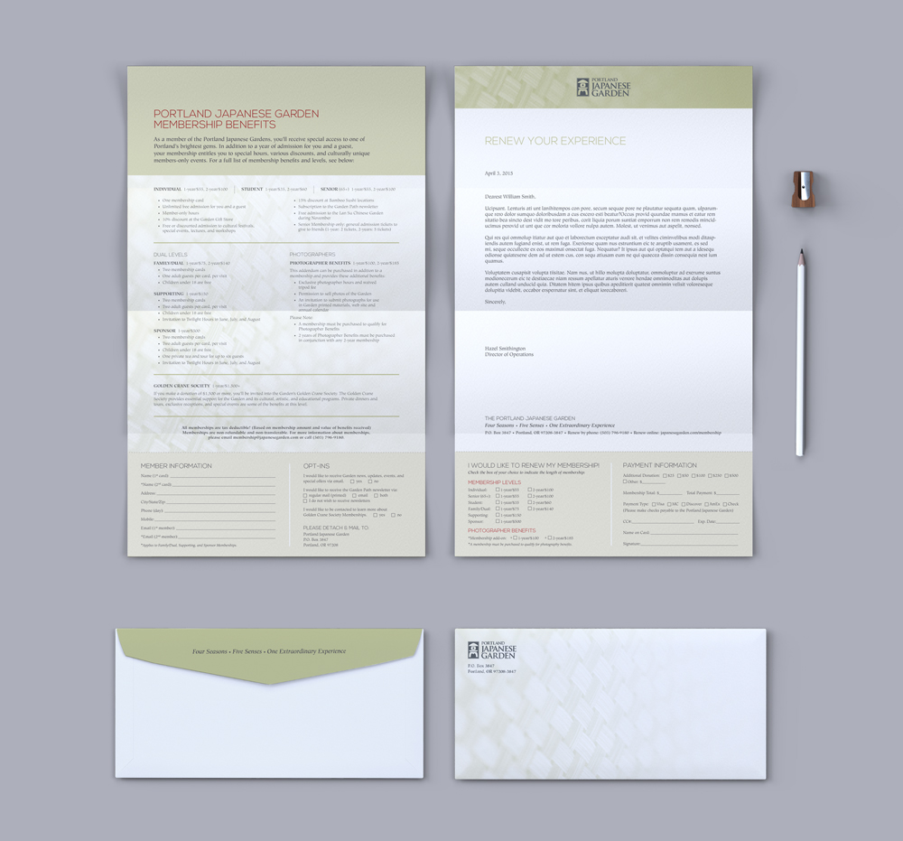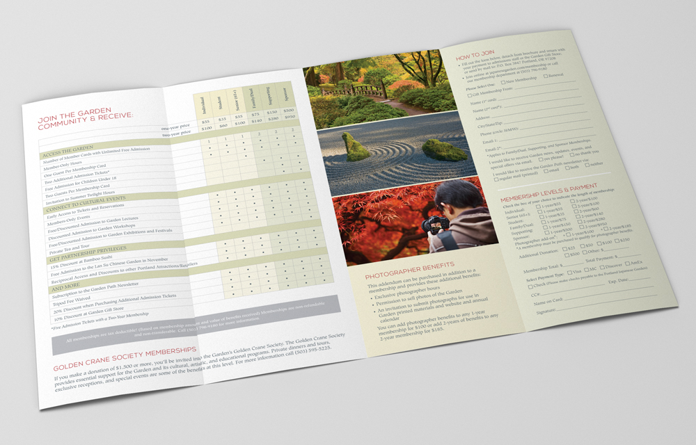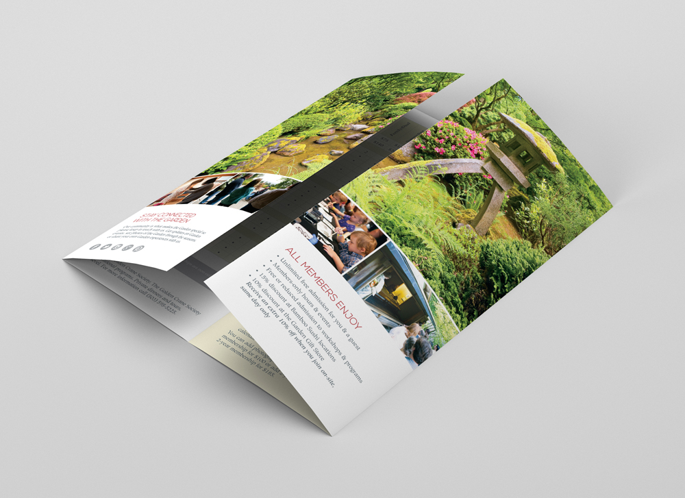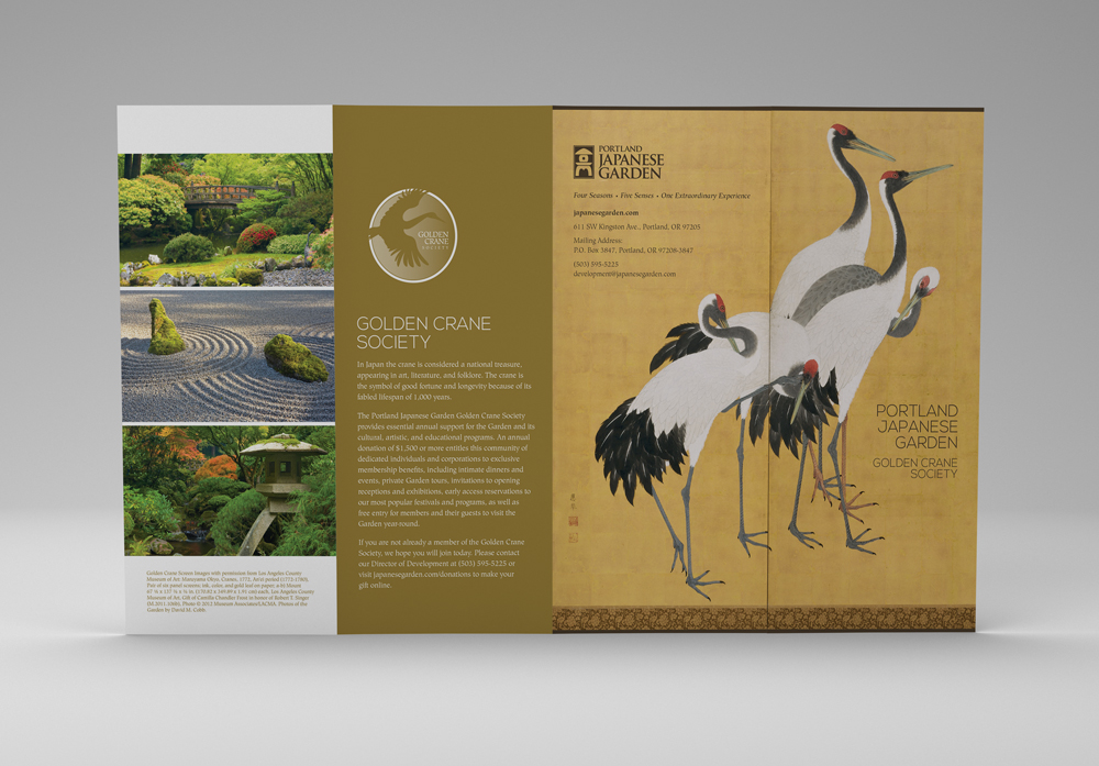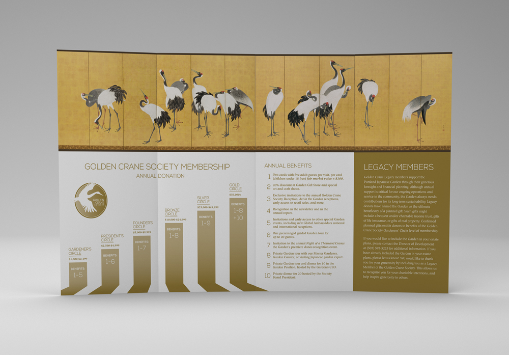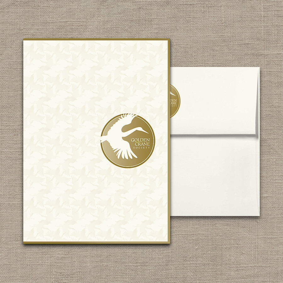 Assortment of marketing materials created for the Garden’s ‘Golden Crane Society.’ This is the highest tier of financial supporters for the Garden, so these materials are speaking to a very distinct group. Includes: brochures, emails, posters, stationery set, member cards, etc.
